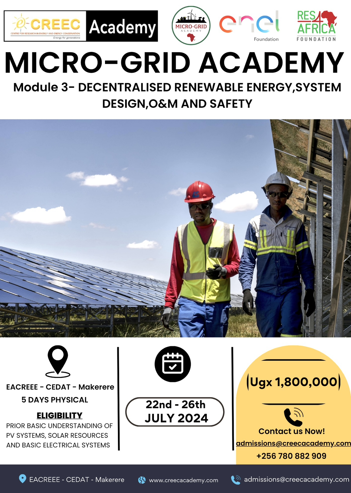 In partnership with the RES4Africa Foundation and supported by the Enel Foundation, we are thrilled to bring you an unparalleled training opportunity focused on decentralized renewable energy systems. Dive deep into the world of microgrid technologies with our comprehensive training, covering essential aspects such as design, operation, maintenance, and safety protocols. APPLY HERE