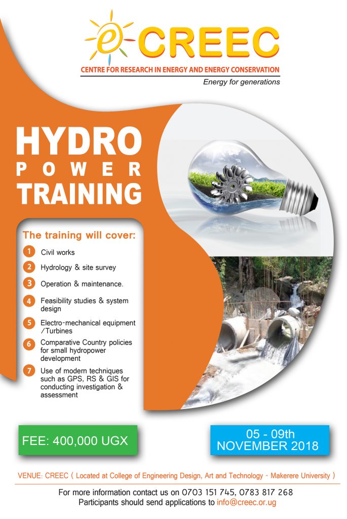 Don’t miss the EAC Regional Training Course on Course on Development, Design, Installation and Operation of Small Hydro power Plants