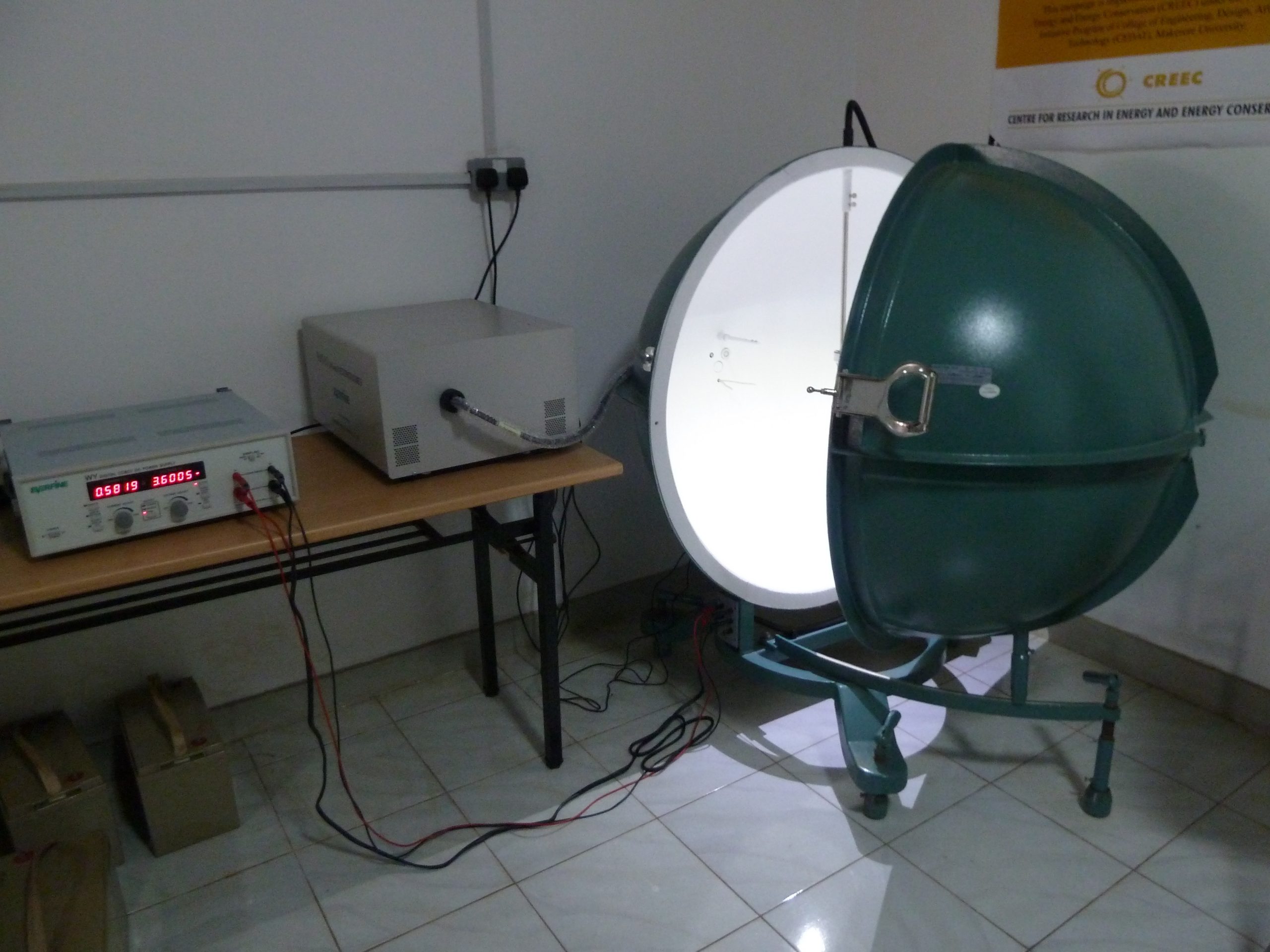 The solar laboratory is furnished with state-of- the-art technology which allows CREEC to test a variety of solar PV equipment. Tests can be performed according to Lighting Global Quality Test Method (LG-QTM) procedures but are not restricted as such. Because CREEC is an independent testing laboratory, it can also offer a breadth of other tests. In the past CREEC has tested kerosene lamps and candles to establish a baseline for fuel consumption, light output and emissions. The baseline can be compared to tests of solar projects to promote the benefits of solar technology.