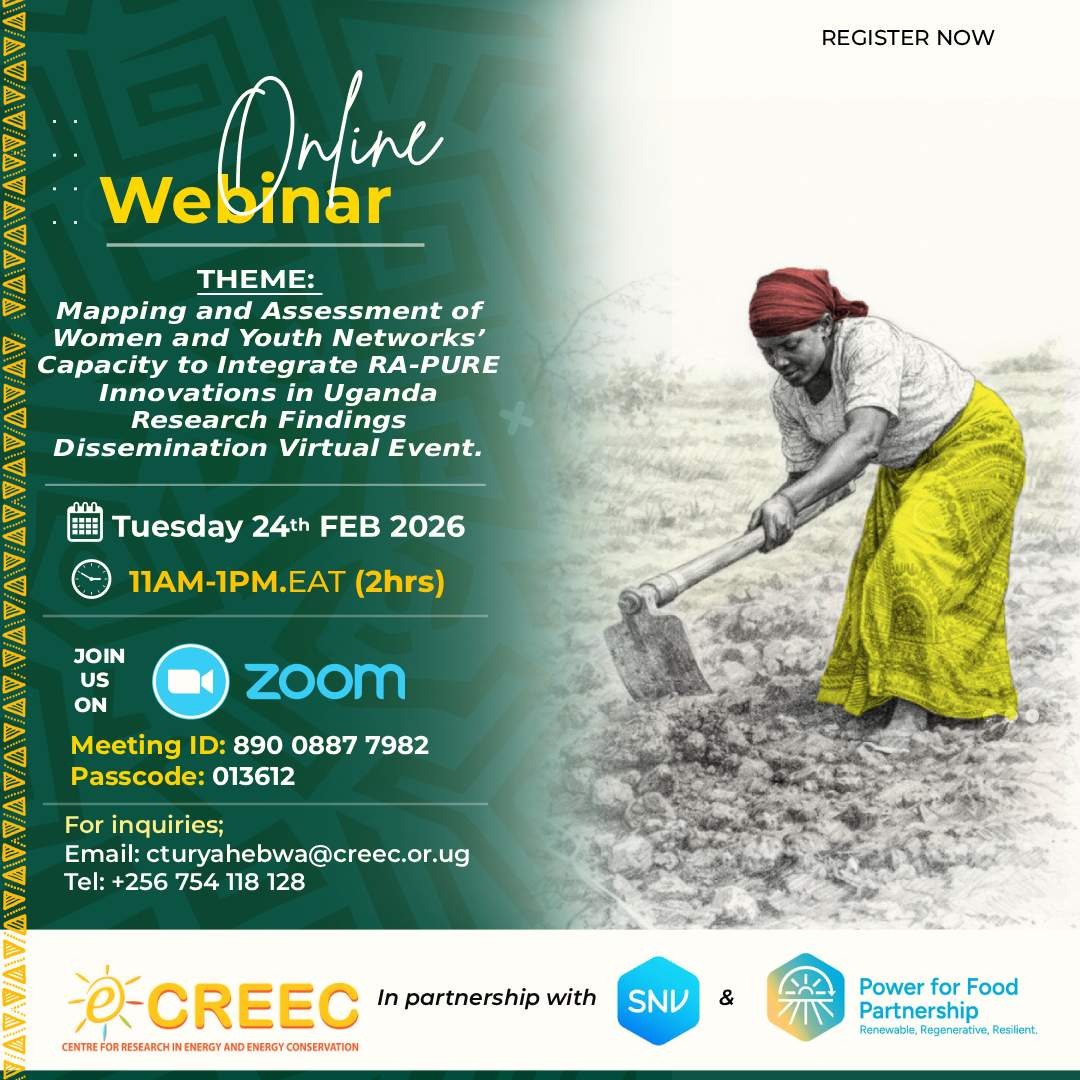 Women and youth are central to the future of Uganda’s agricultural systems. As farmers, entrepreneurs, innovators, and community leaders, they play a critical role in driving food security, income generation, and climate resilience. Yet, their capacity to adopt and scale productive use of renewable energy (RA-PURE) innovations remains uneven and, in many cases, underexplored.